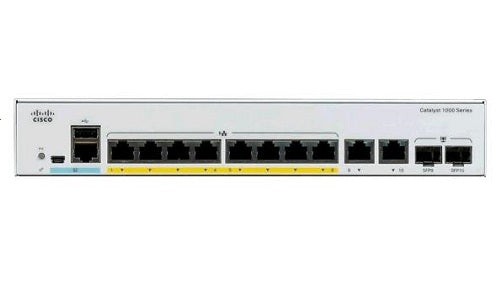 Cisco Catalyst 1000 Switch - Fixed Managed - L2 - 8 x 10/100/1000 Ethernet PoE+ and 2 x 1Gig SFP / RJ-45 Combo Uplink Ports - 67W PoE budget - includes a single fixed power supply - fanless model - rack-mountable
