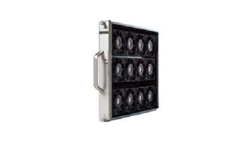 This model has eight individual fans (two rows of four each). It supports a minimum airflow of 640 cubic feet per minute (CFM) at 100 percent fan throttle.